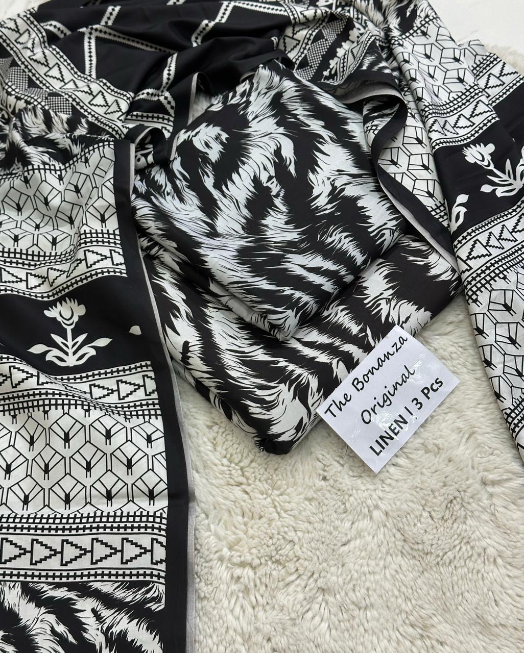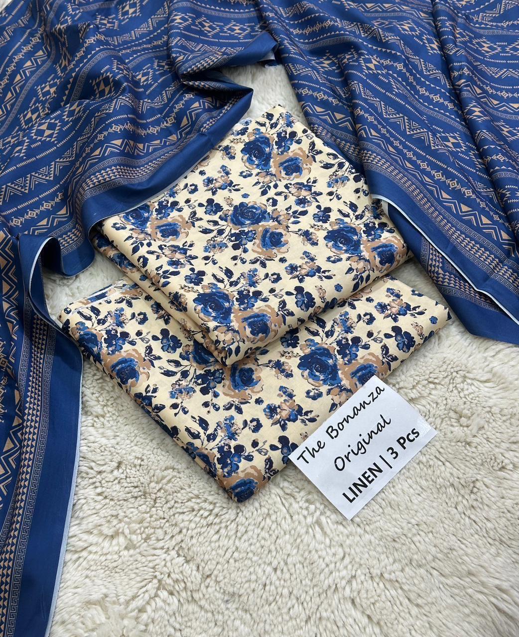 Bonanza Original Misri Gold – 3PC Printed Linen Suit
